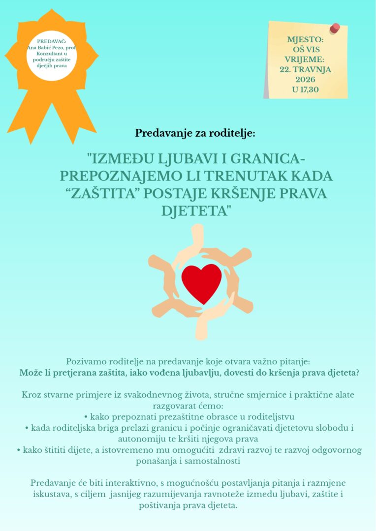 RODITELJI– 22.04.2026. U 17.30 sati predavanje u trajanju od 1 h i rasprava u trajanju od pola sata na temu